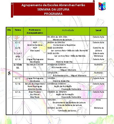 Este é o blogue da Biblioteca Escolar da Escola Básica Dr. Abranches Ferrão. Neste espaço pretende-se dar a conhecer as diversas iniciativas levadas a cabo por esta biblioteca- Pretende ser um espaço aberto a muitas letras, muitos livros e muitas ideias.