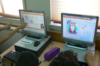 Os alunos do 4.º ano vieram à biblioteca trabalhar com a ferramenta VOKI